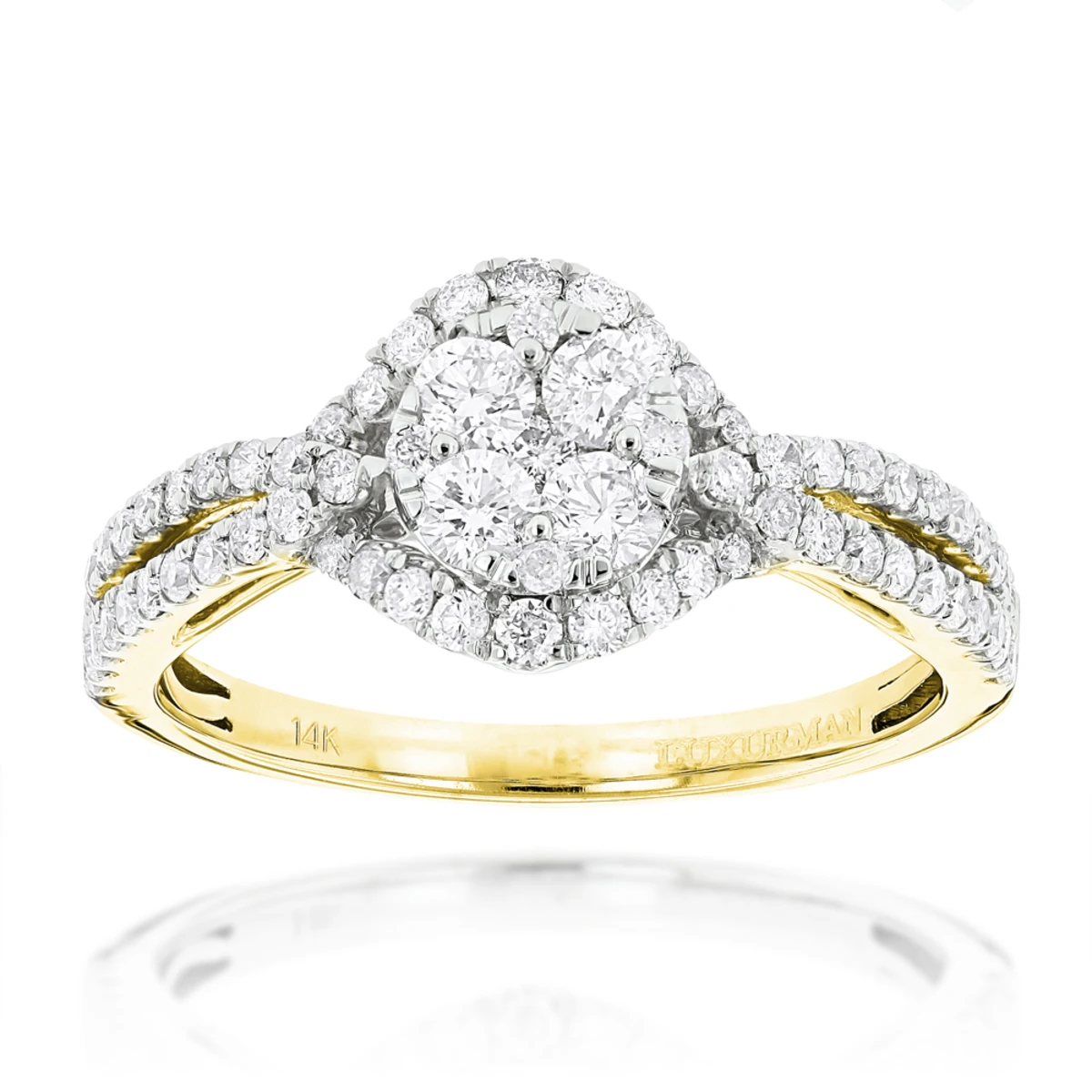 1 Carat Luxurman Ladies Diamond Engagement Ring Cluster Diamonds 14K White Gold
