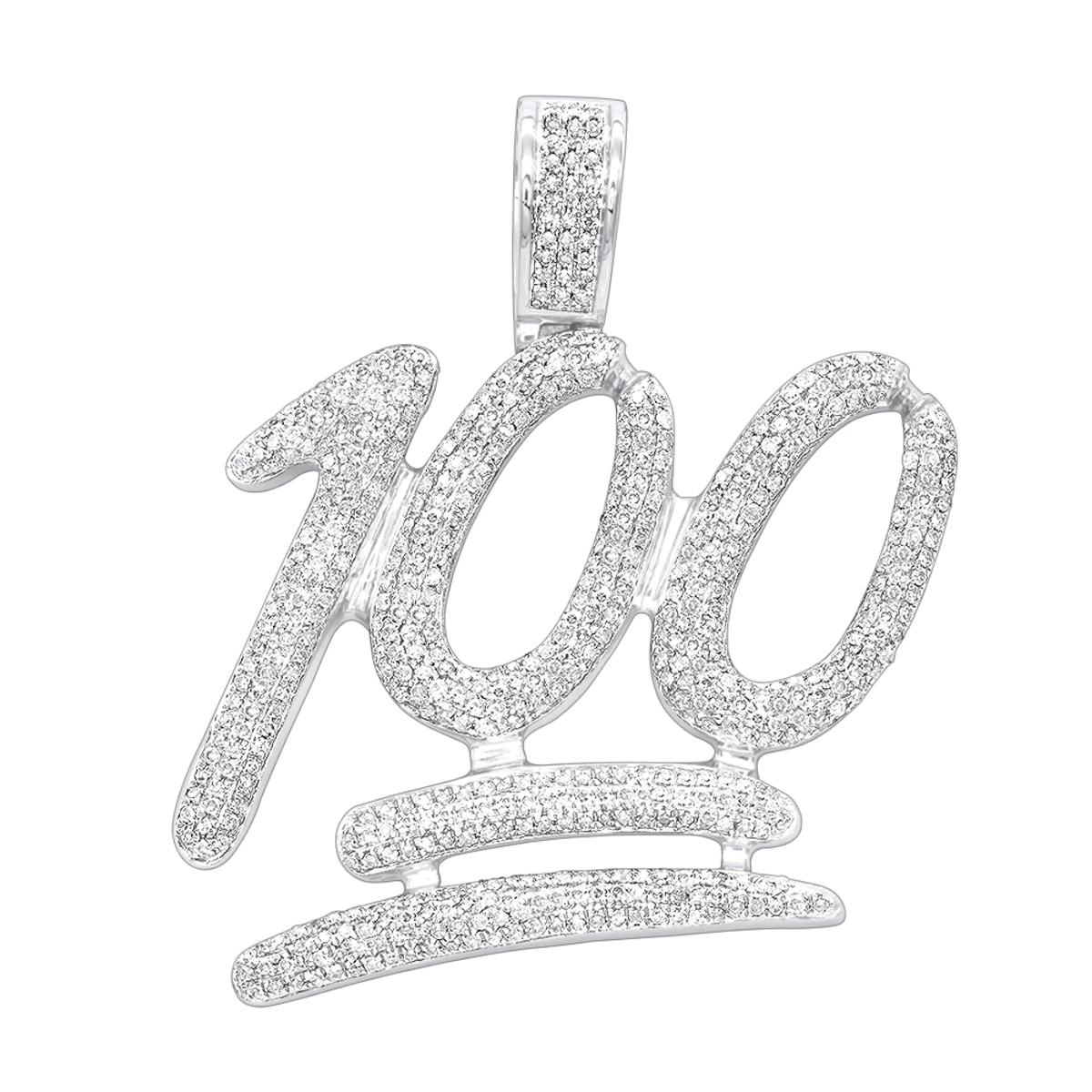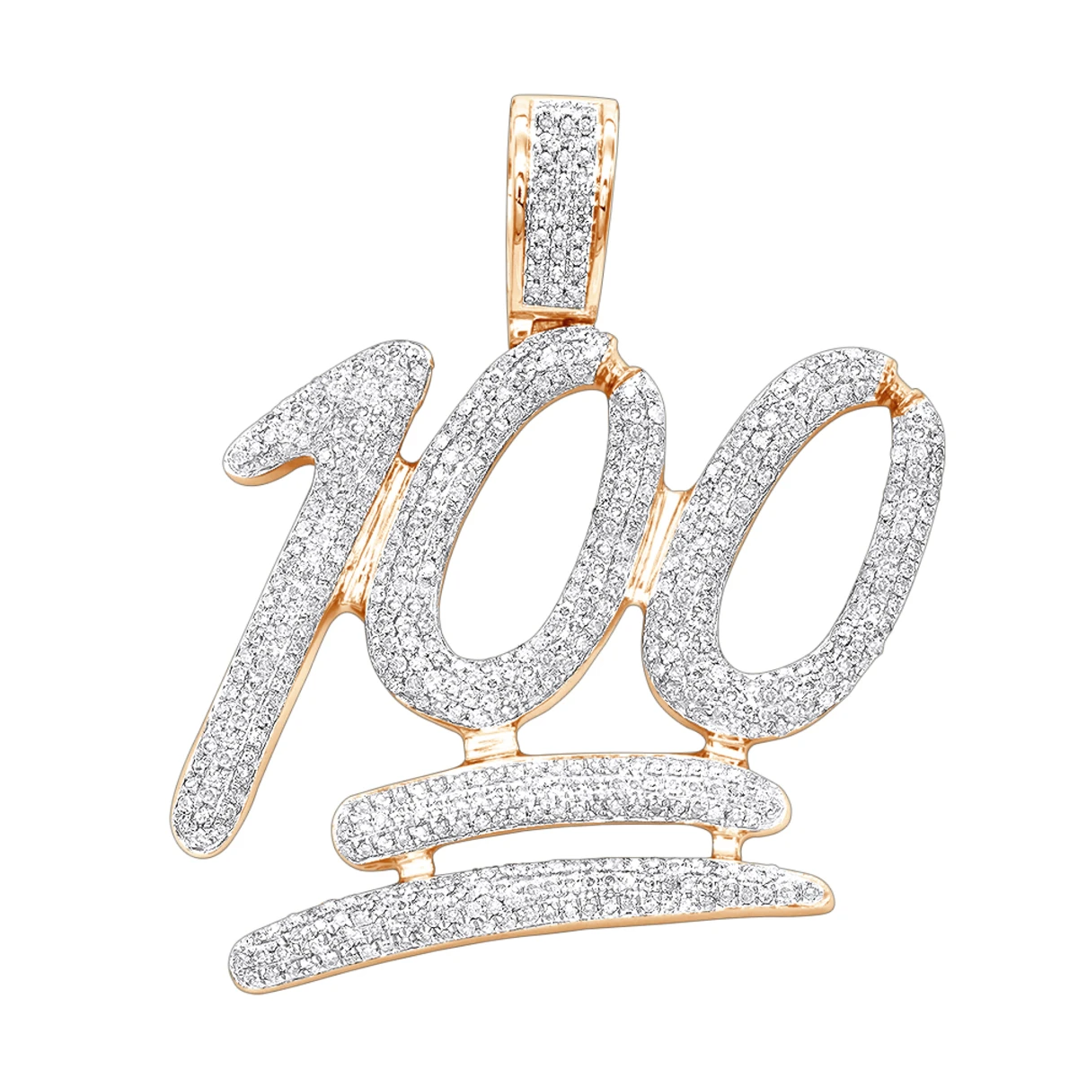 This sparkling Real 10K Gold 100% Emoji Large Diamond Pendant for Men by Luxurman showcases a popular 100% or one hundred points emoji symbol,meaning the person wearing it keeping it 100 by being 100% honest and authentic; the pendant weights approximately 10 grams and showcases 1.75 carats of dazzling round cut genuine diamonds masterfully pave set in highly polished gold finish. This gorgeous diamond men’s pendant is available in 10K white, yellow and rose gold. From emojipedia: Originating from the number 100 written on a school exam or paper to indicate a perfect score of 100 out of 100. This 100 emoji is commonly used as a shorthand for 100%, with the usage meaning “keep it real” or a similar sentiment. This men’s diamond pendant makes a terrific present for somebody who is done something that deserves a perfect 100! You also can personalize this piece or check we’ve already made and create your own design.