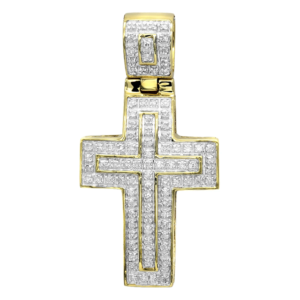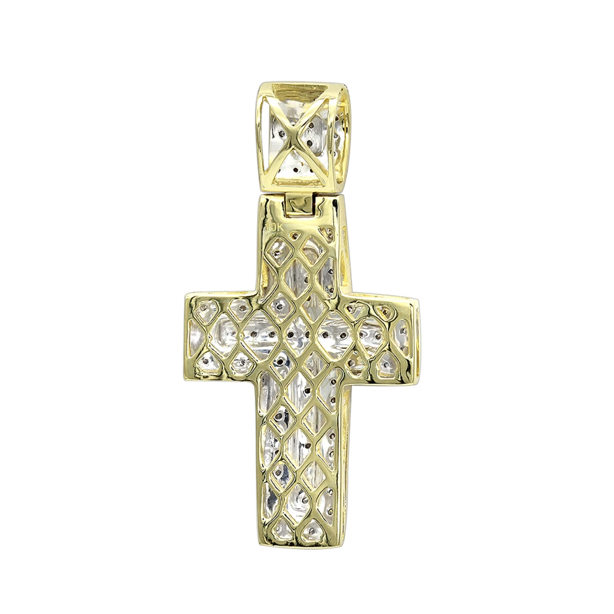 This Solid 10k Gold Small Diamond Cross Pendant for Men and Women features a classic cross design with bail and is decorated with 0.3 carats of genuine diamonds, this unisex diamond cross pendant showcases a design which is 1 1/2in (37mm) long (with bail) by 13/16in (20mm) wide and is available in 10 white gold, yellow gold and rose gold. Combine it with one of our chains to make it into a nice looking necklace! You also can personalize this piece or check we’ve already made and create your own design.