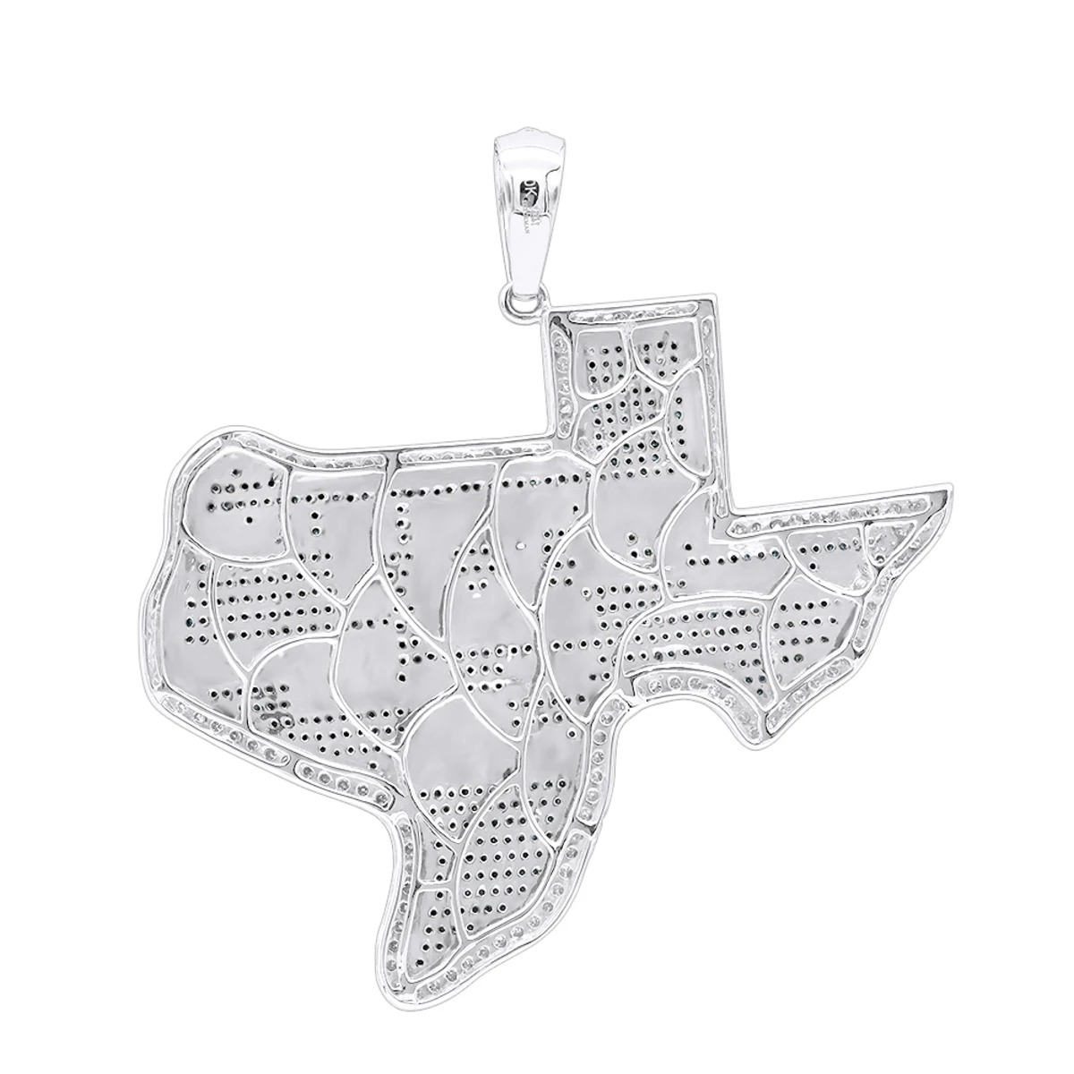 10K White Gold Texas State Map Blue Diamond Pendant 4.95ct