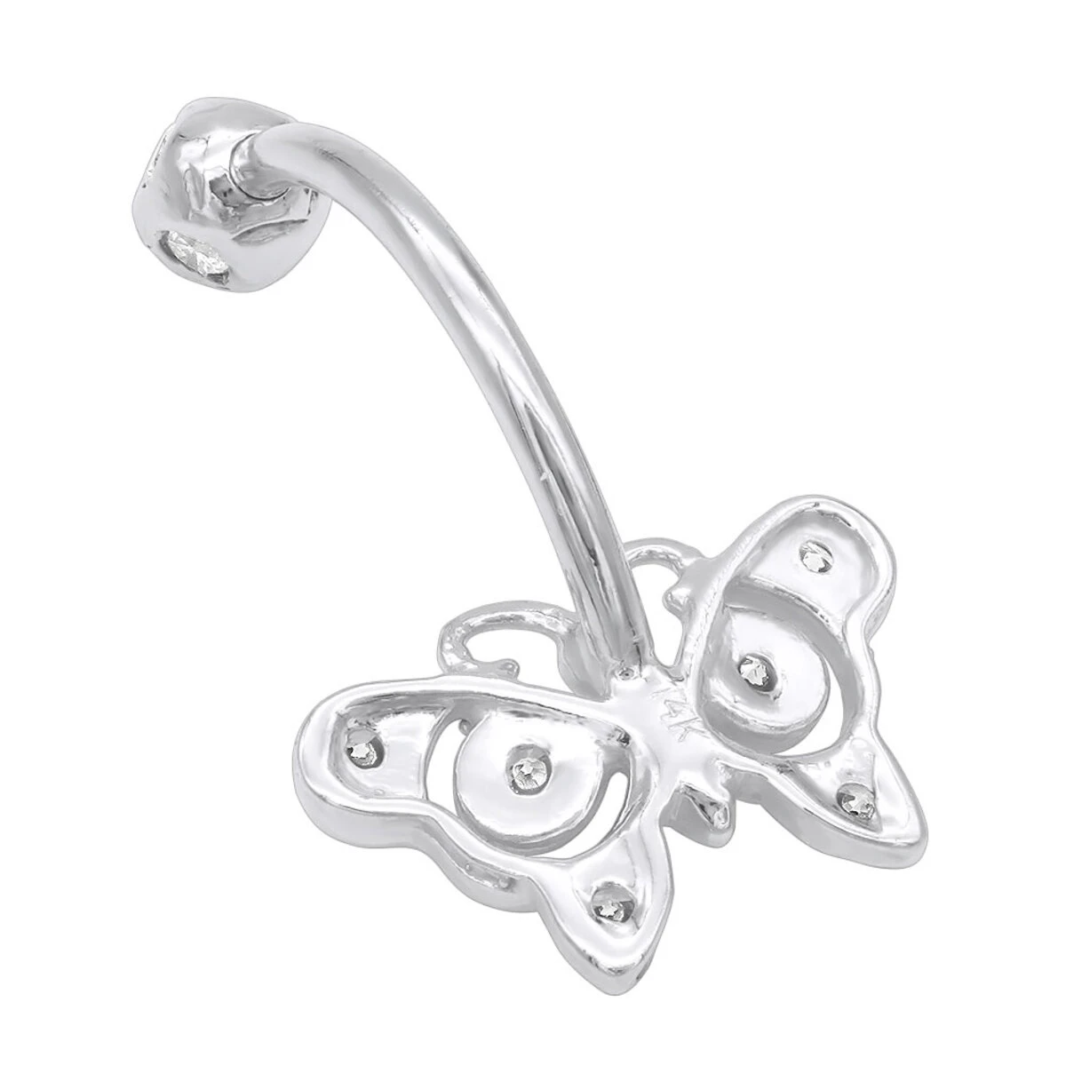 Genuine Diamond Body Jewelry! This 14K Gold Diamond Butterfly Belly Ring displays 0.40 ctw of sparkling bezel-set round diamonds. Featuring a lovely design and a highly polished gold finish, this 14K white gold belly button ring is available in 14K white, yellow, or rose gold and can be customized with different fancy color diamonds.