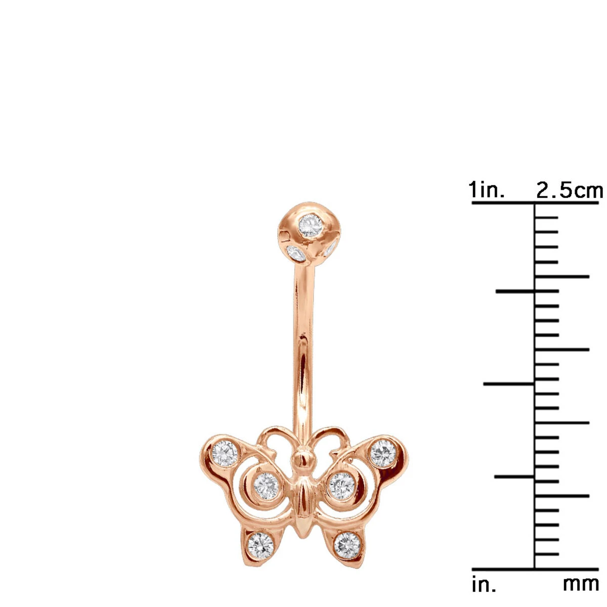 14K Rose Gold Real Diamond Butterfly Belly Ring