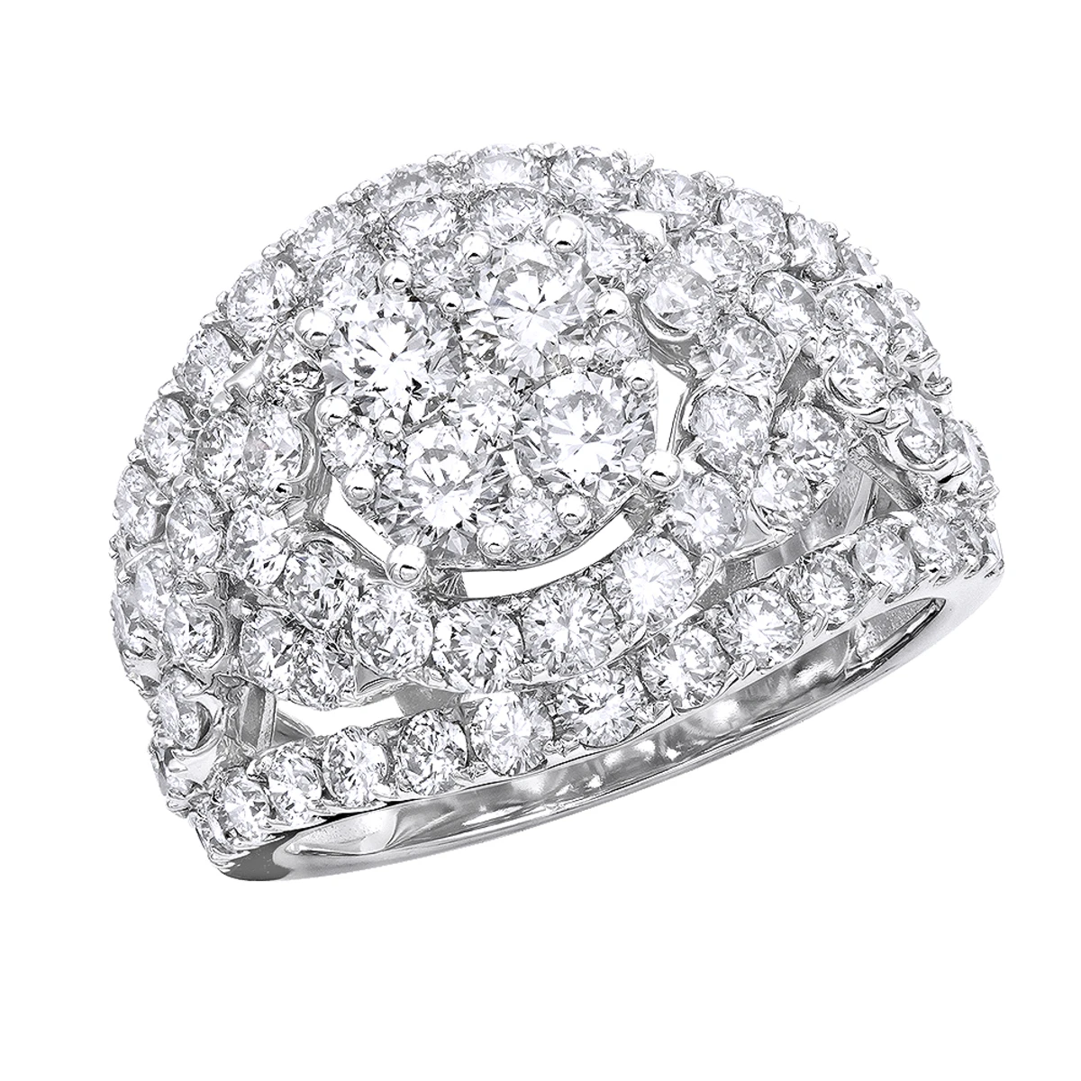 14K White Gold Cluster Diamond Right Hand Ring For Women 4CT By Luxurman
