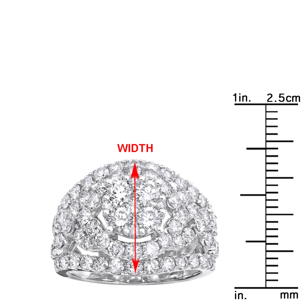 Right Hand Rings Collection: This gorgeous beyond stunning wide-shape diamond cluster ring for women represents the elegance and style. The ring captivates with 4 carat of diamonds by adding sparkle to this pretty cluster setting and unique design. This ring is 16mm wide and makes a great right hand ring or a very unique engagement ring with its prominent center setting and is available in 14K Yellow, White and Rose Gold.
