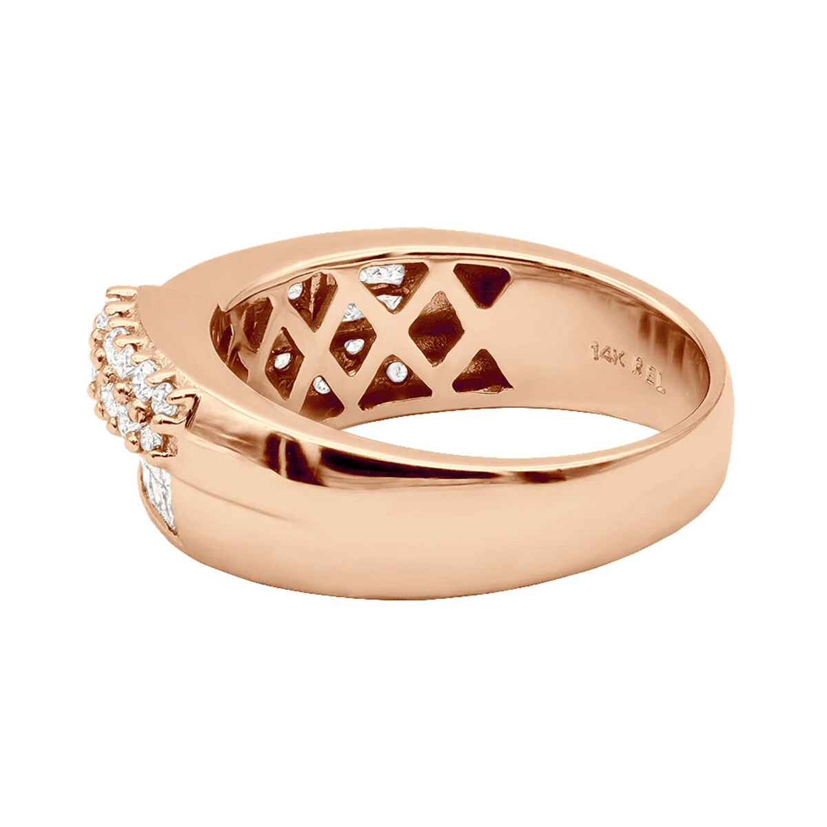 This magnificent 14K Gold Designer Diamond Band with Princess & Round diamonds weighs approximately 6 grams and displays 1.51 ctw of dazzling invisibly set princess cut diamonds and prong set round diamonds. Featuring a simple yet elegant design, this women’s diamond band is available in your choice of 14K white, yellow or pink gold.
