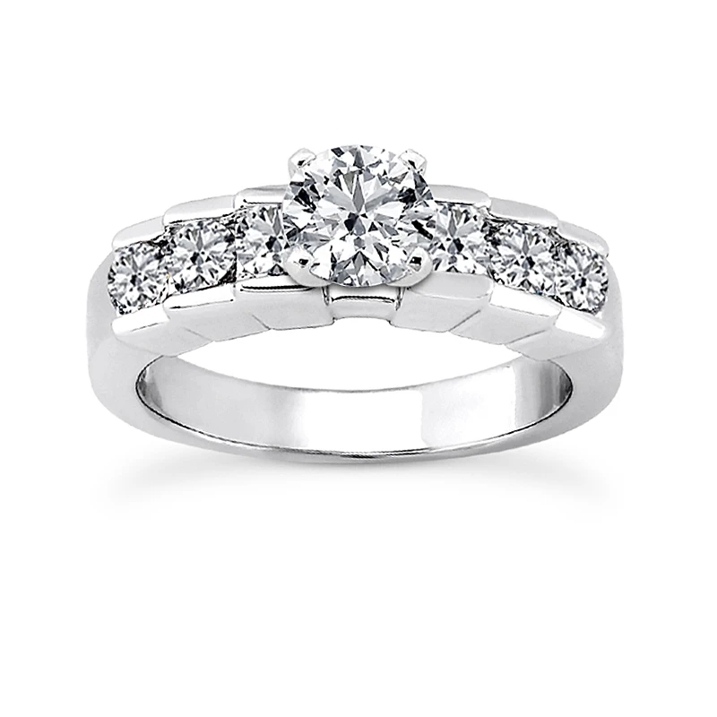 14K White Gold Designer Prong And Bar Set Diamond Engagement Ring 1.70ct