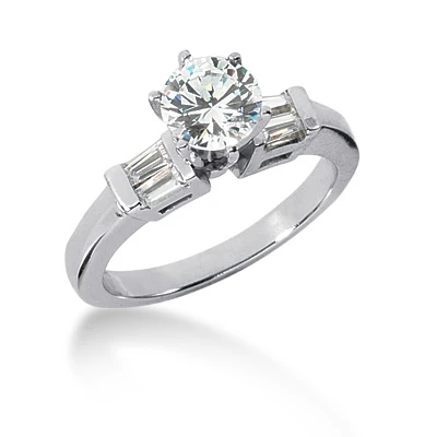 This 14K Gold Diamond Designer Engagement Ring set consists of a diamond engagement ring and matching diamond band. The ring showcases a 0.50 carat round diamond in the center and 0.68 carats of baguette diamonds on the sides for a total of 1.18 carats of dazzling diamonds. The Engagement band showcases 0.57 carats of dazzling baguette diamonds. This set is available in Platinum, 18k or 14k yellow, rose, white gold, various sizes, and can be customized with any color and quality diamonds. Please contact us if you would like to customize it.