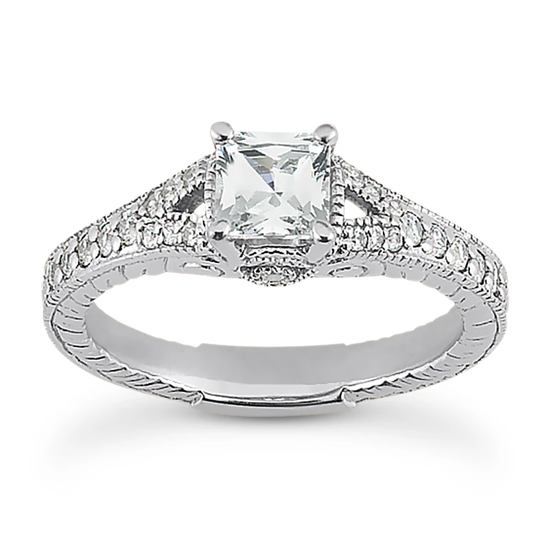 14K White Gold Diamond Unique Engagement Ring 0.89ct 2.8mm