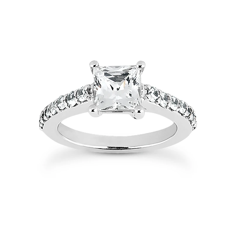 14K White Gold Diamond Unique Engagement Ring Set 0.94ct