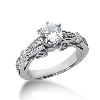 14K White Gold Diamond Vintage Engagement Ring 0.70ct 4.01mm