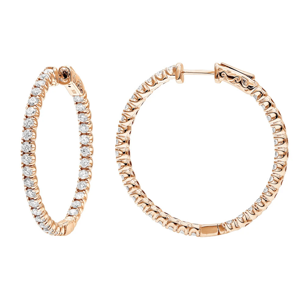 14K White Gold Inside Out 3 Carat Hoops Diamond Earrings For Women By Luxurman