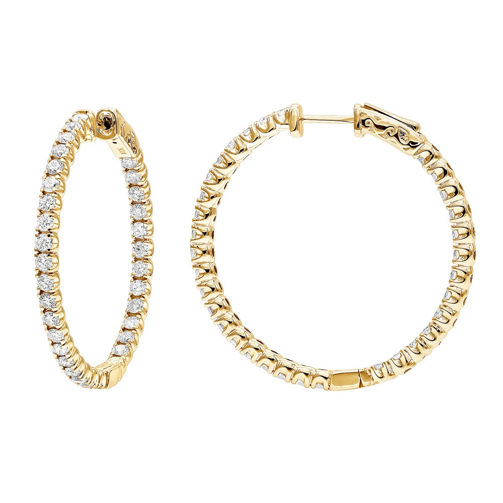 These 14K Gold Inside Out 3 carat Hoops Diamond Earrings for Women by Luxurman are the perfect accessory for any woman. Crafted from 14K gold, these earrings feature a hinged back for easy wear and removal. The diamonds are set in a prong setting and have a clarity of SI. The gold is available in three colors – white, yellow, and rose – so you can choose the one that best suits your style.These earrings are perfect for any occasion. Whether you’re dressing up for a night out or just want to add a bit of sparkle to your everyday look, these earrings are sure to make a statement. The 3 carat total weight of the diamonds adds a luxurious touch to any outfit.These earrings are designed with comfort in mind. The hinged back ensures that they stay securely in place, while the inside out design adds a unique touch. The diamonds are set in a prong setting, which allows them to sparkle and shine.These 14K Gold Inside Out 3 carat Hoops Diamond Earrings for Women by Luxurman are the perfect way to add a touch of luxury to any look. With their classic design and luxurious diamonds, these earrings are sure to become a favorite in your jewelry collection.