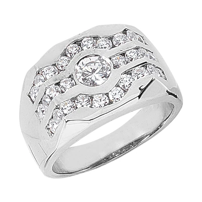 14K White Gold Men’s Diamond Ring 1.34ct 11.3mm