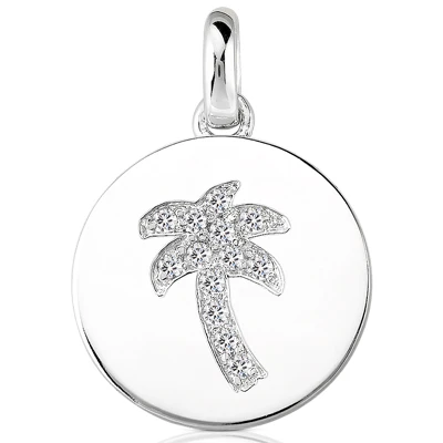 14K White Gold Palm Tree Diamond Circle Pendant 0.26ct
