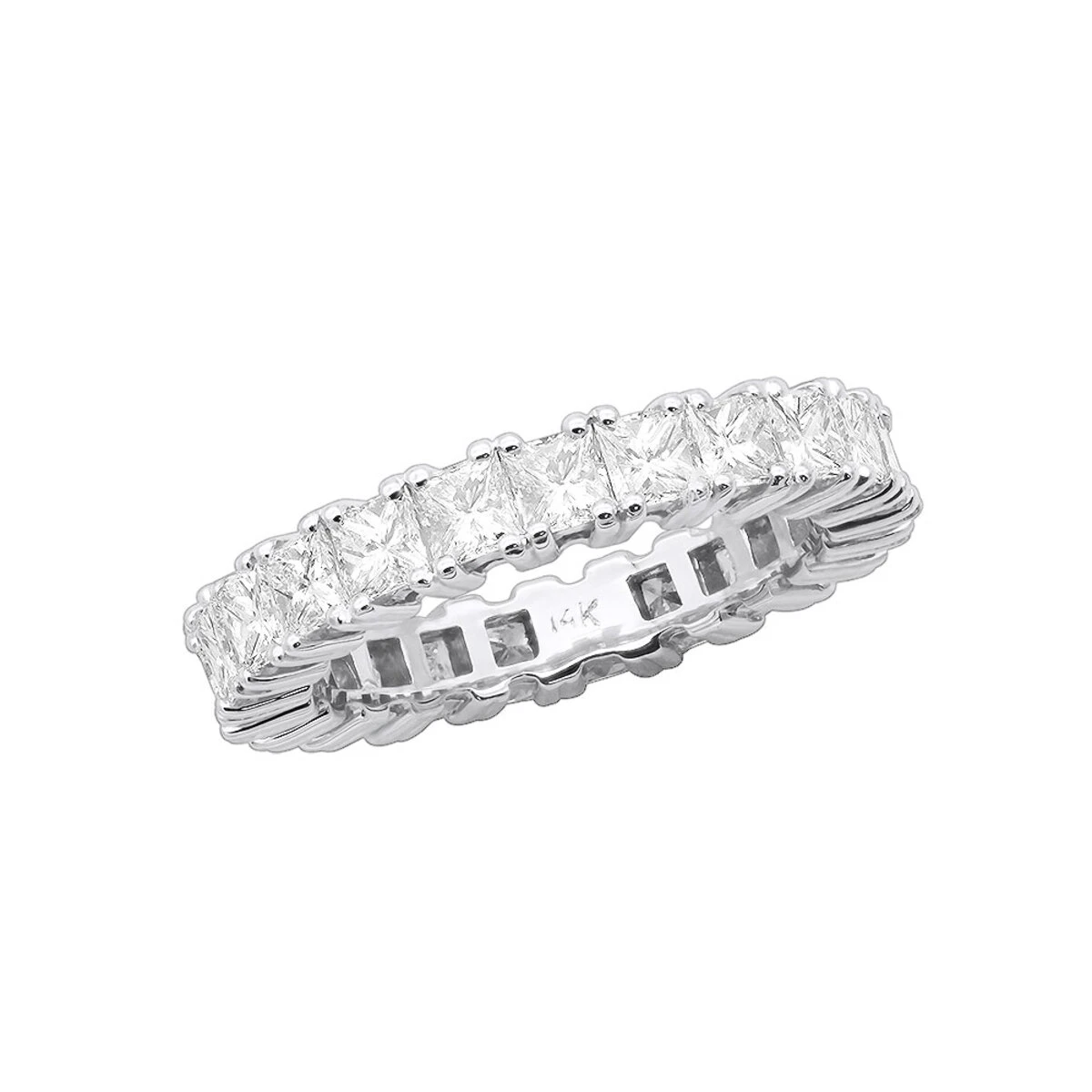 14K White Gold Princess Cut Diamond Eternity Ring 3.74ct 4.4mm