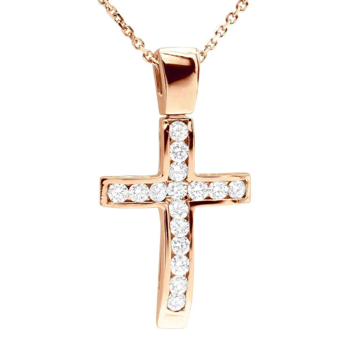 This 14K Gold Round Diamond Cross Pendant from Luxurman is a stunning piece of jewelry that is perfect for any occasion. The pendant is crafted from 14K gold and features a round diamond cross set in a channel setting. The diamond is of SI clarity and has a total carat weight of 0.48. The pendant is available in white, yellow, and rose gold, so you can choose the color that best suits your style.The cross pendant is a timeless and classic design that is perfect for any religious occasion. It is a great way to show your faith and make a statement. The diamond adds a touch of sparkle and elegance to the piece, making it a beautiful accessory for any outfit. The pendant is also unisex, so it can be worn by both men and women.This 14K Gold Round Diamond Cross Pendant from Luxurman is a beautiful and meaningful piece of jewelry that will last a lifetime. Whether you are looking for a special gift or something to add to your own jewelry collection, this pendant is sure to be a treasured piece for years to come. You also can personalize this piece or check we’ve already made and create your own design.
