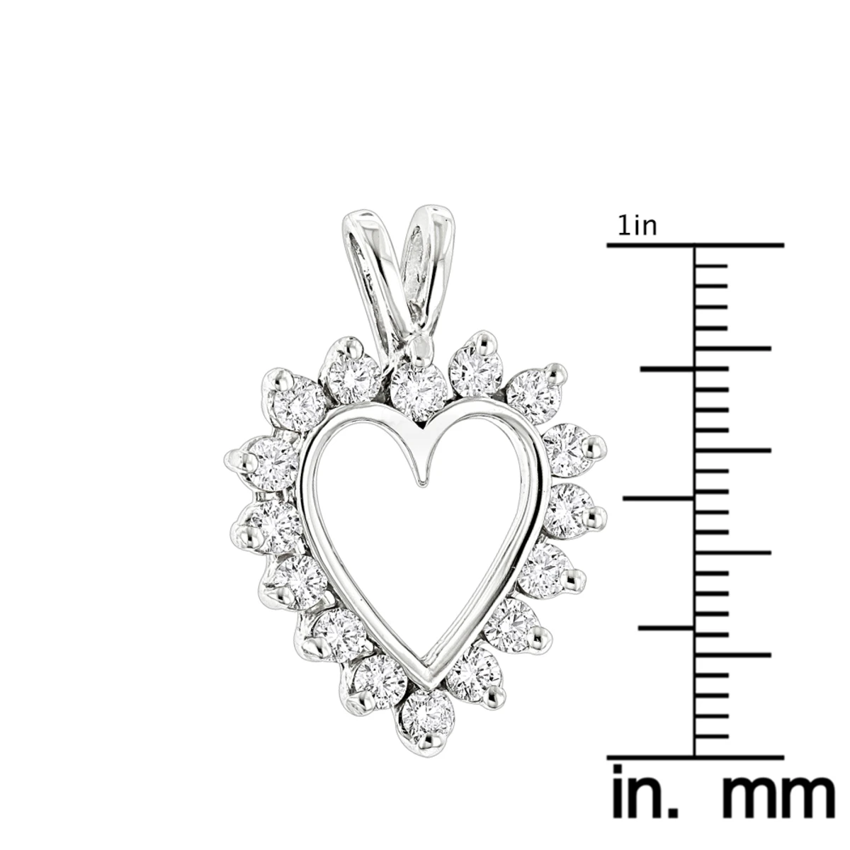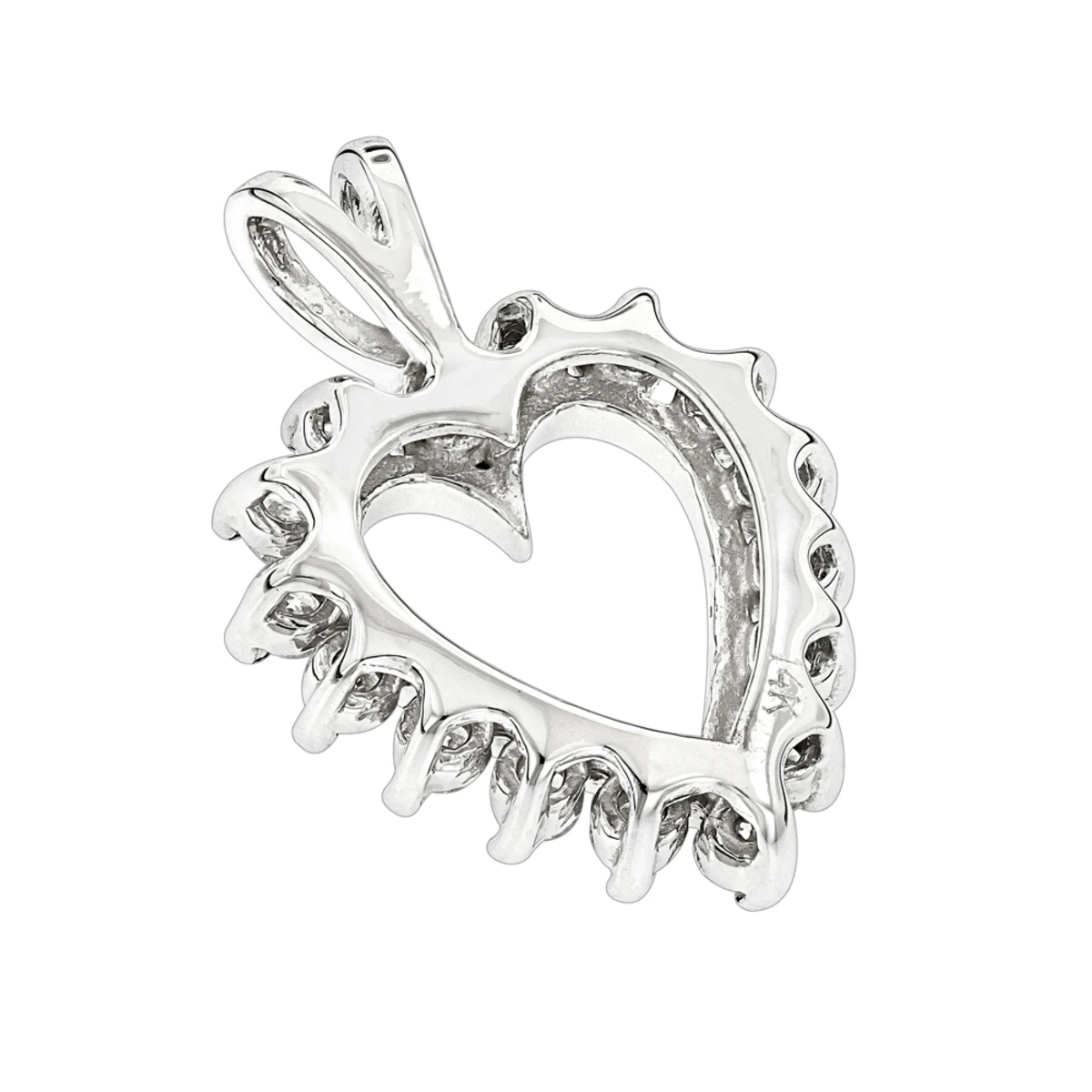 14K White Gold Round Diamond Heart Pendant 0.64ct 16mm