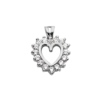 14K White Gold Round Diamonds Heart Pendant 0.48ct