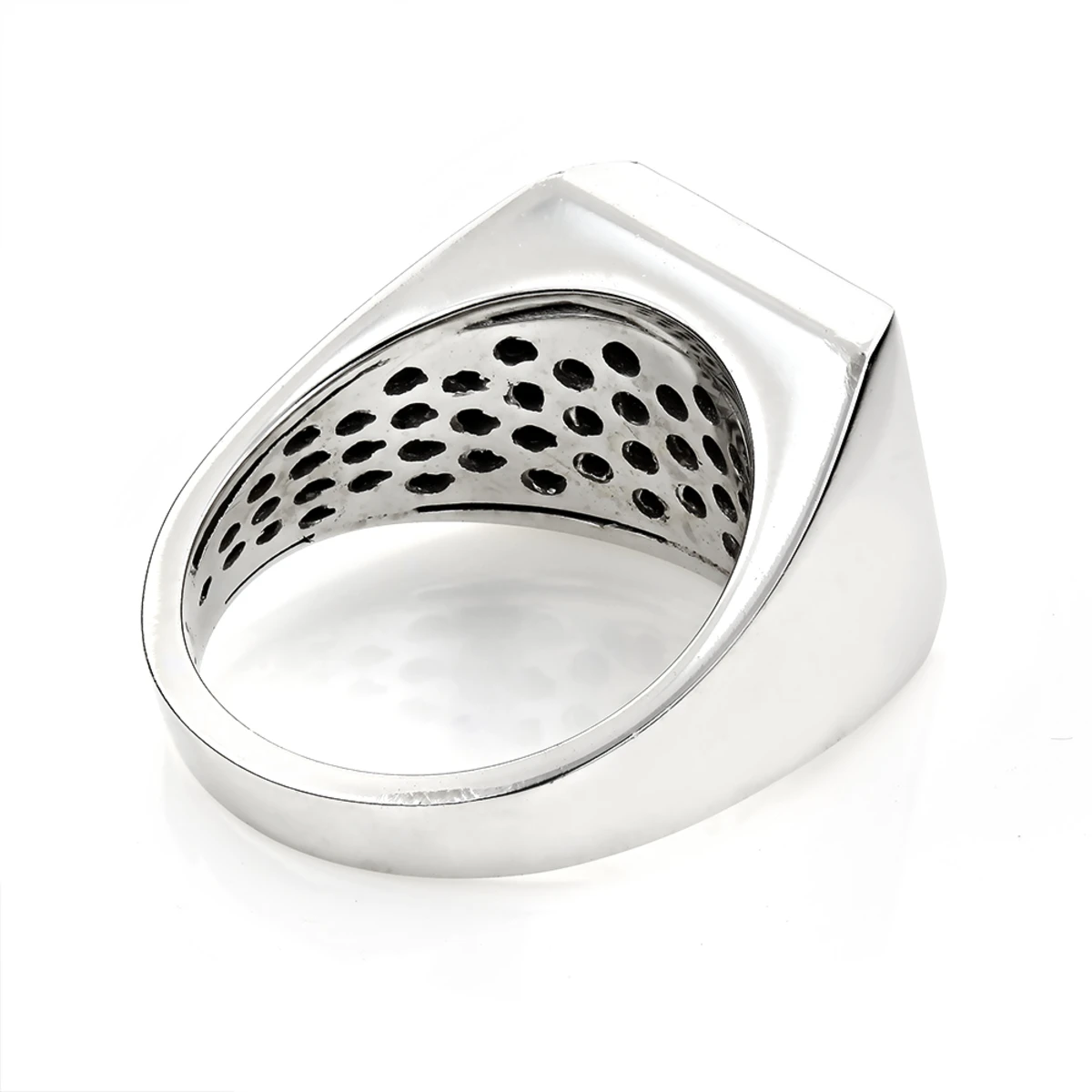 14K White Gold Square Shaped Men’s Round Diamond Ring 0.88ct