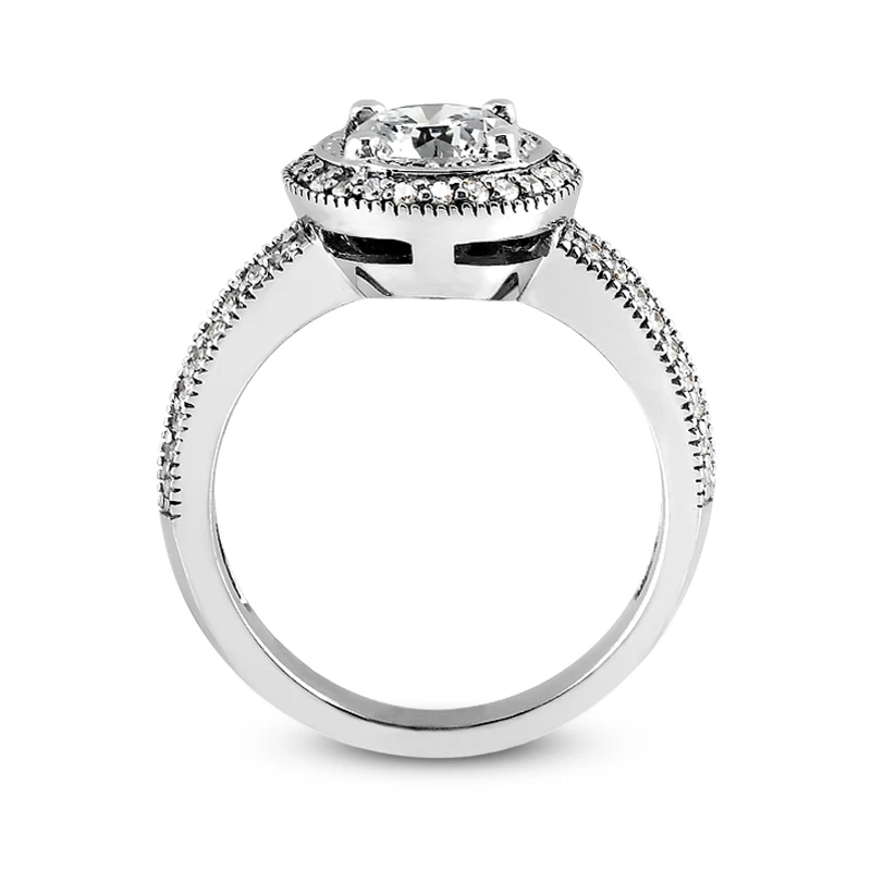 14K White Gold Unique Diamond Engagement Ring 0.76ct 3.3mm