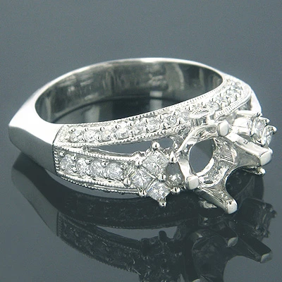 14K White Gold Unique Diamond Engagement Ring Setting 0.90ct