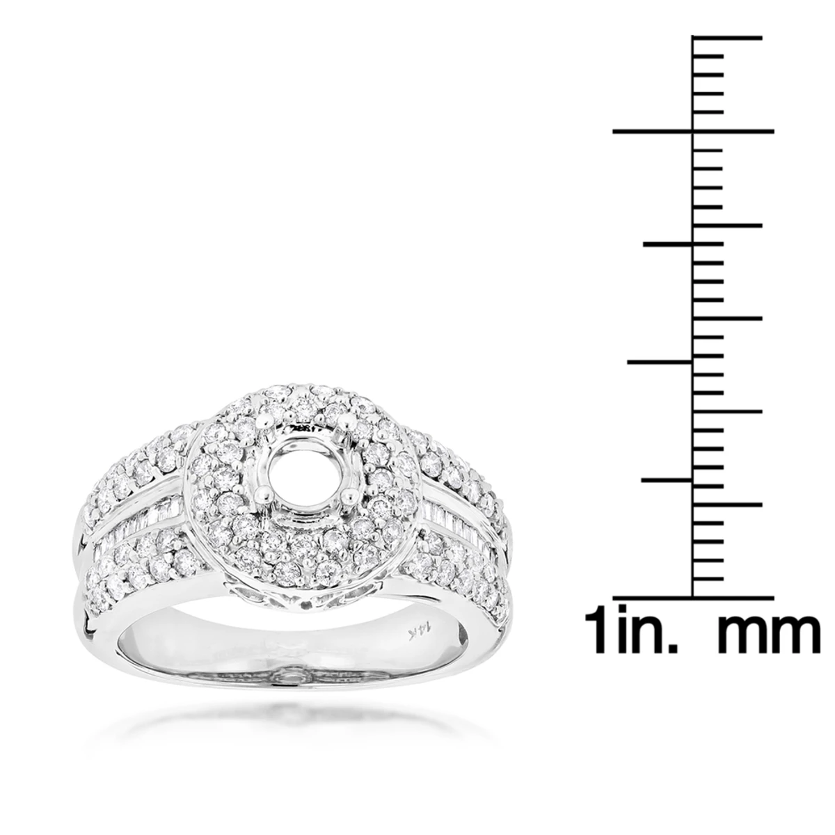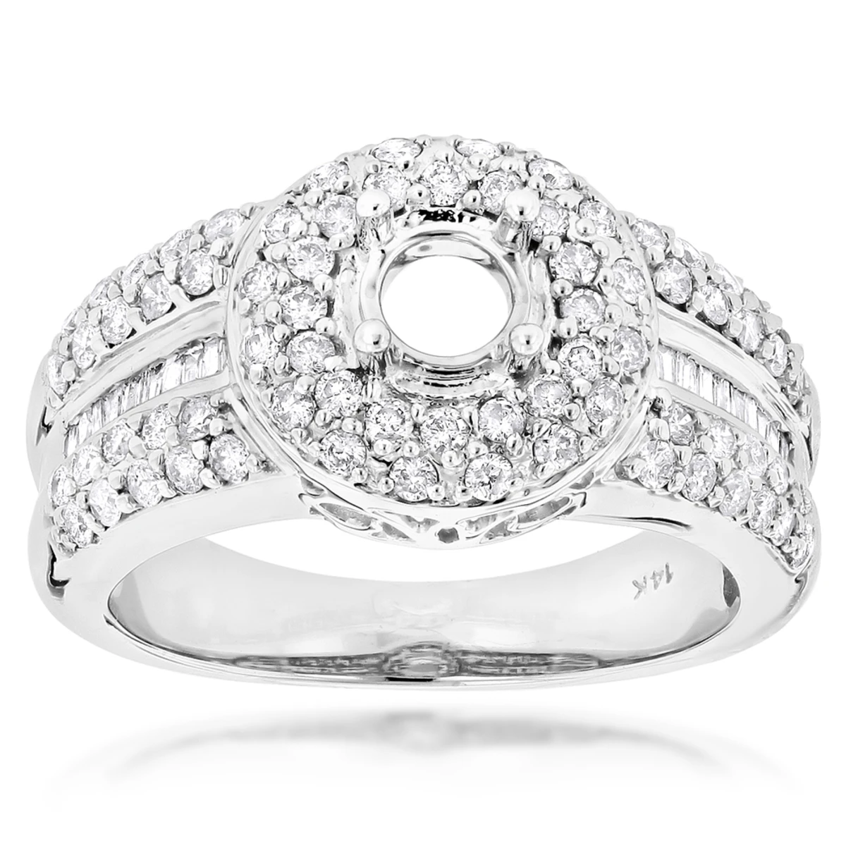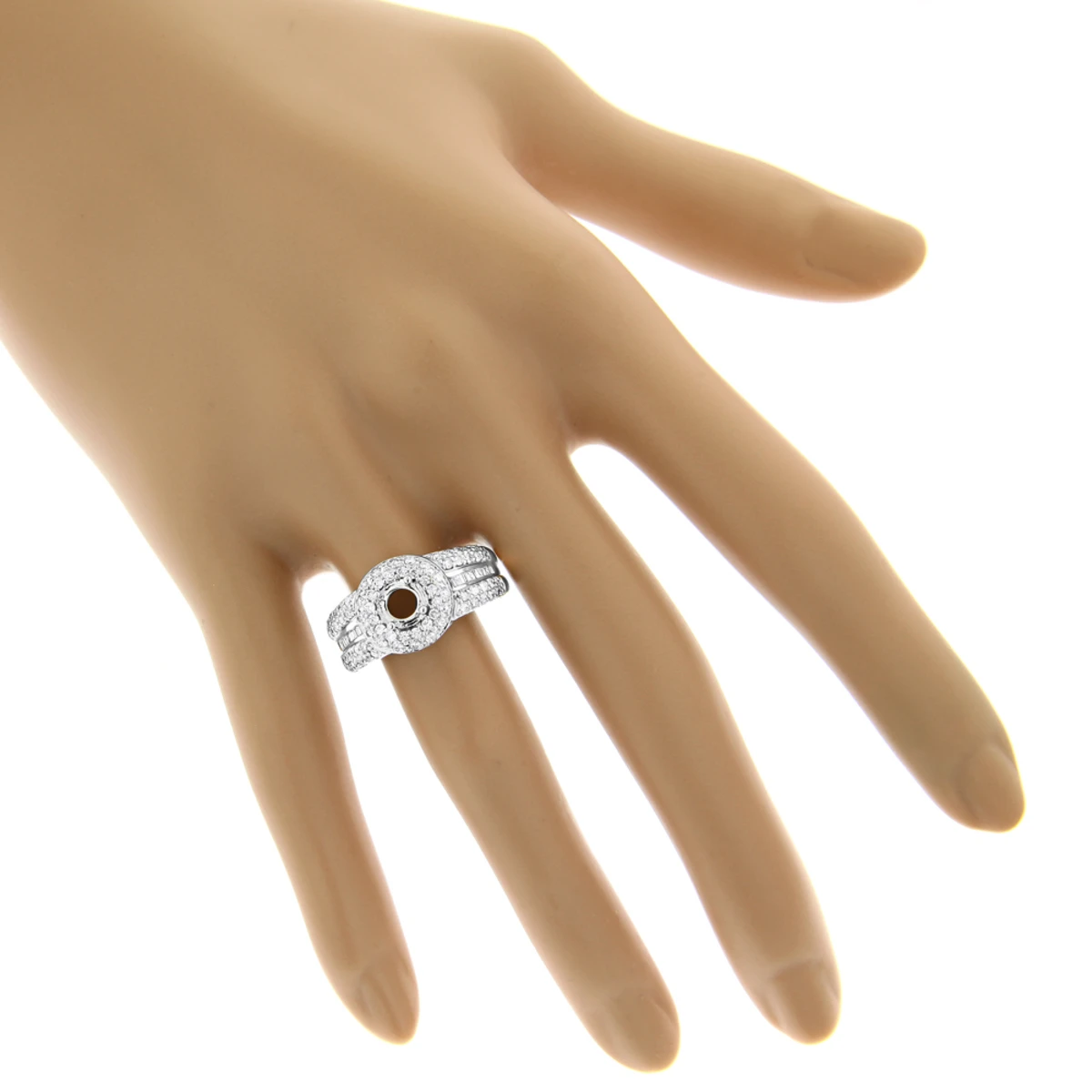 14K White Gold Unique Diamond Engagement Ring Setting 1.25ct