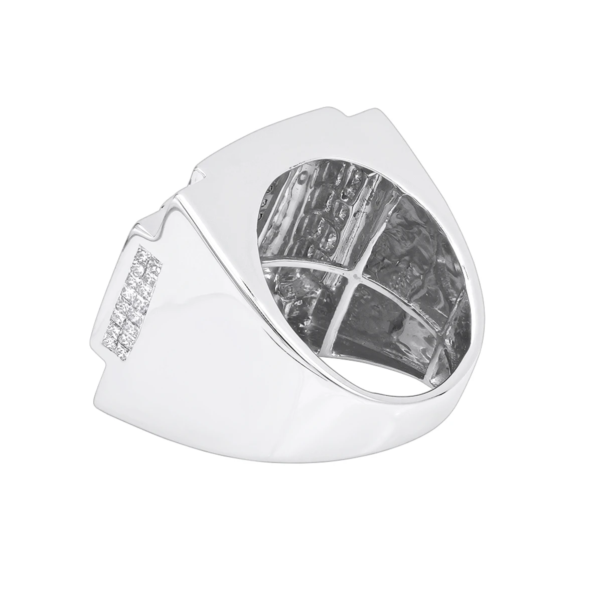 14K White Gold White Yellow And Blue Diamond Ring For Men 3.75 Carats Color Diamonds