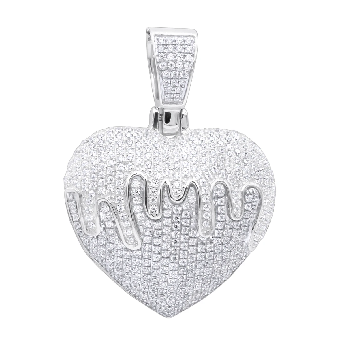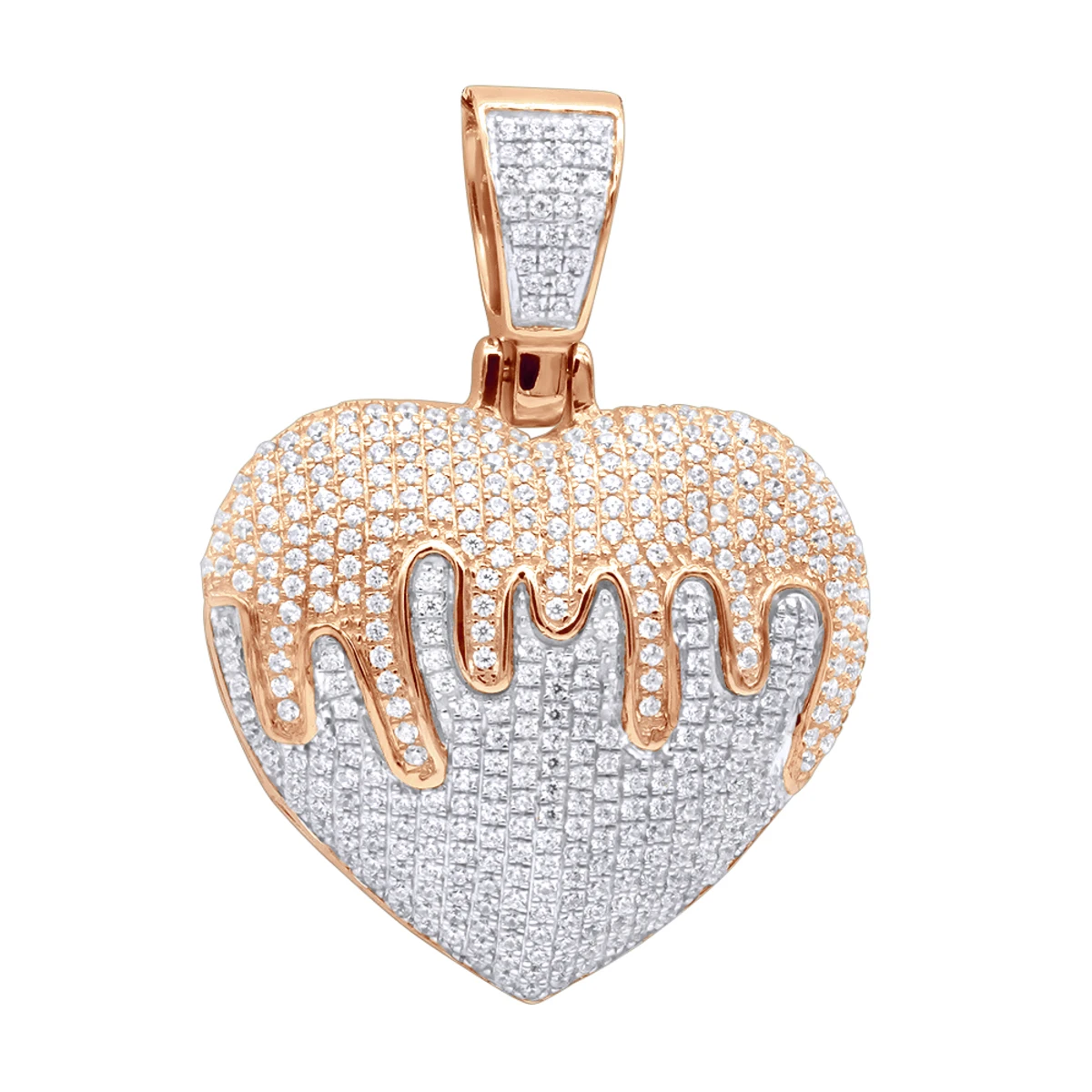 14K Yellow Gold Iced Out Dripping Heart Diamond Pendant For Women 1.3ct