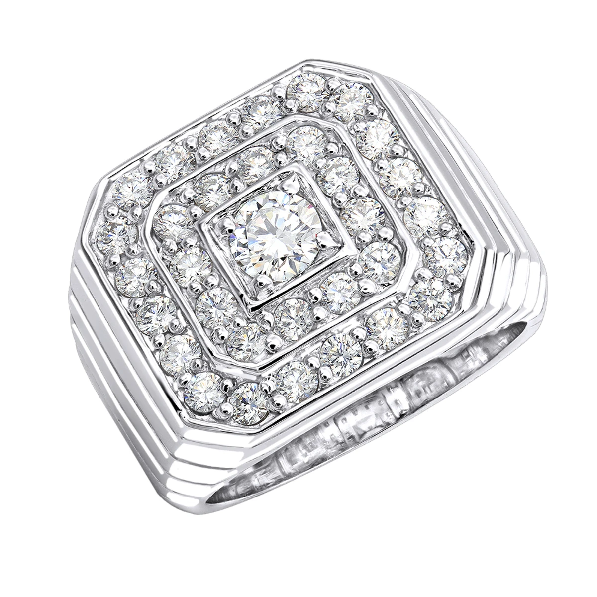 This fabulous and modern 18K Gold Men’s Square Shape Diamond Engagement Ring features an intricate square shape with cut corners and a ribbed band design. The ring is 17.7mm wide and is decorated with 2.1 carats of VS quality sparkling round diamonds with no compromises on quality. The big center diamond is 1/2 carat. This fantastic diamond ring is available 18k yellow gold, rose gold and white gold, various sizes, and can also be custom made in Platinum. Please note: it will take us 4-5 business days to make this ring for you so please plan accordingly. Please contact us at 212-398-3123 if your size or desired option is not listed. Made in USA.