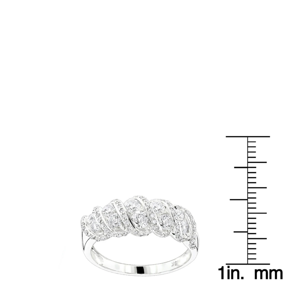 This exquisite 18K Gold Designer Women’s Diamond Rings Collection Item weighs approximately 7 grams and displays 1.5 carats of sparkling round diamonds, each masterfully pave or channel set in a luscious gold frame. Featuring an intricate design and a highly polished gold finish, this fabulous ladies diamond band is available in 18K white, yellow and pink gold.