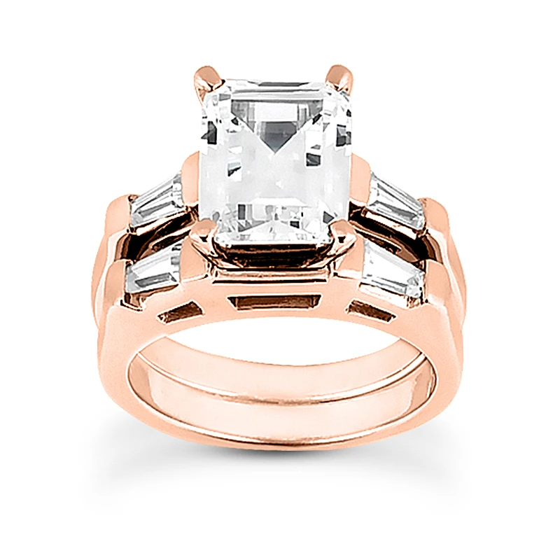 This 18K Gold Emerald Diamond Engagement Ring Mounting Set consists of an engagement ring Setting and matching band. The Setting showcases 0.12 carats of dazzling baguette cut diamonds and can accommodate from 0.25ct to 4ct emerald cut stone as a center (gold weight and number and carat weight of side stones may vary). The band showcases 0.12 carats of dazzling baguette cut diamonds. Please note: This listing is for engagement ring Setting and matching band only, center diamond is for illustration purposes only and is sold separately. This Setting is priced to fit up to 0.75ct center stone. If you need it to fit a larger stone please contact us toll free in USA: 1-866-423-6262 or outside USA: 212-398-3123 prior to making a purchase as the price will vary depending on the size of your center stone.