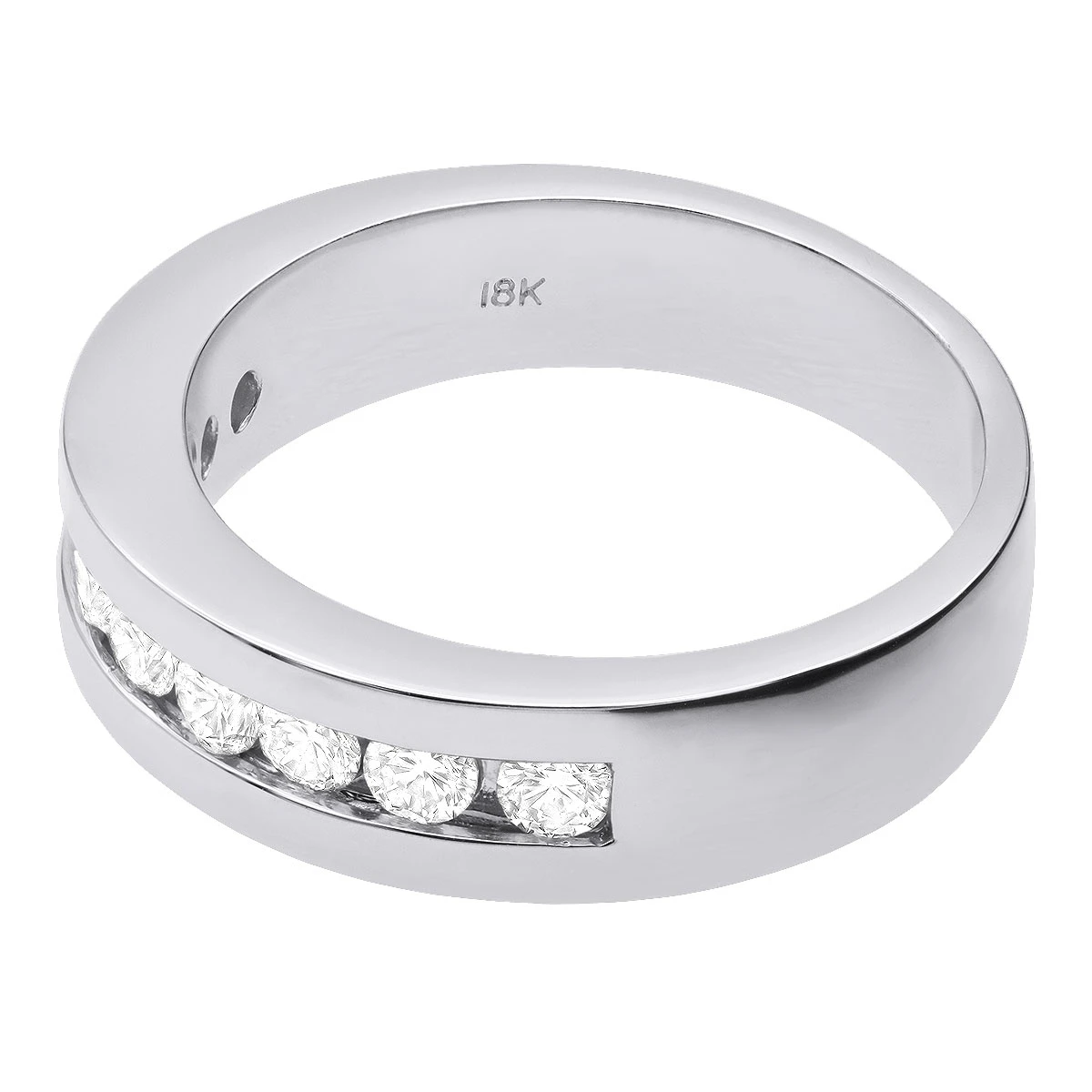 18K White Gold Round Diamond Men’s Wedding Ring 1.08ct