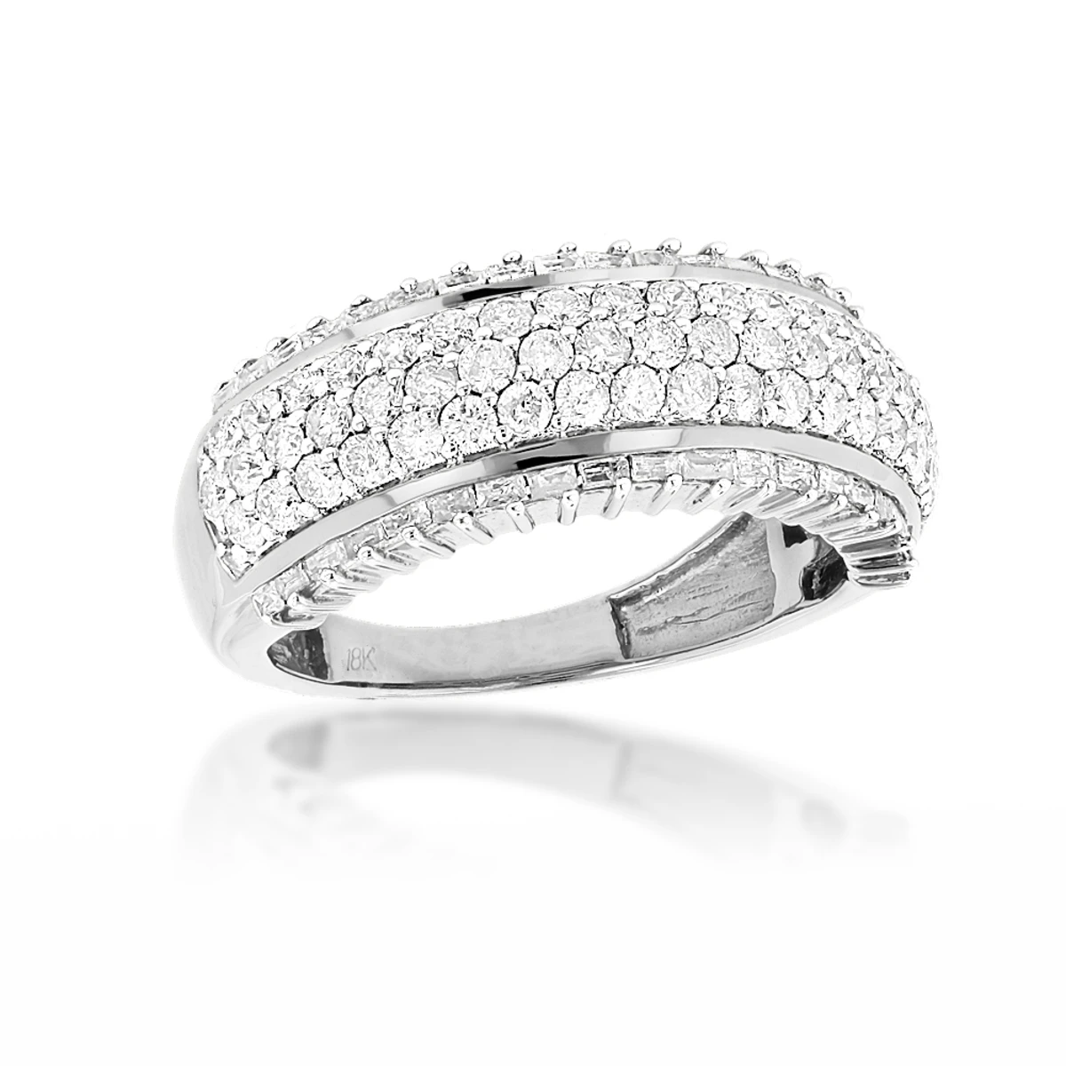This exquisite 18K Gold Designer Diamond Band with Round and Baguette diamonds weighs approximately 7 grams and showcases 2.34 ctw of sparkling diamonds, each masterfully pave, prong, or channel set in a lustrous gold frame. Featuring a luxurious design, this dazzling diamond ring is available in your choice of 18 Karat white gold, yellow gold, and rose gold.