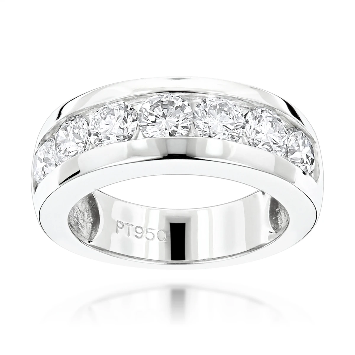 7 Stone Round Diamond Bands: Platinum Diamond Wedding Ring For Men 1.5ct