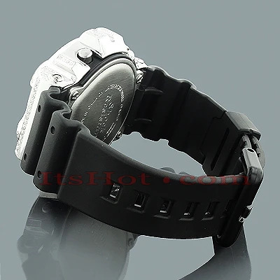 This custom iced out Casio G-Shock Diamond Watch is based on the original DW6900 model. This diamond watch features 4.5 carats of genuine white diamonds around the bezel, a gold plated sterling silver case, a black rubber band and a digital dial code. A G-Shock Diamond Watch is a stylish addition to any wrist.