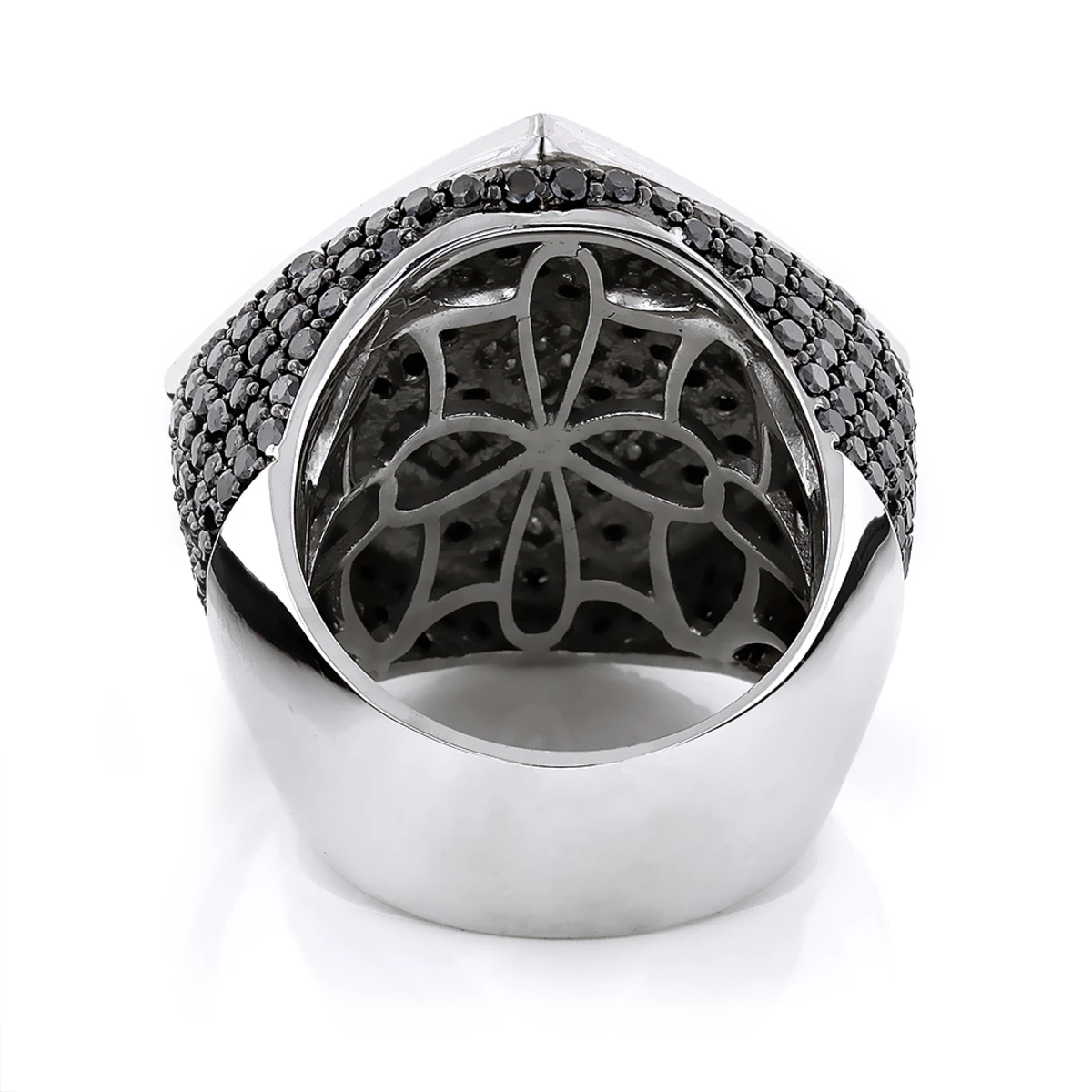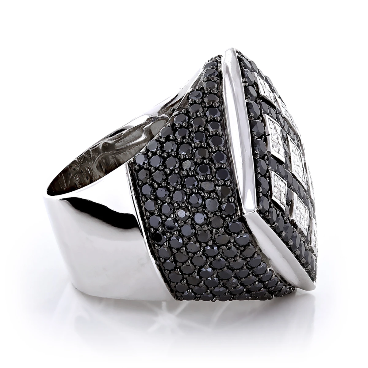 Celebrity 14K White Gold White Black Diamond Men’s Massive Ring 8.65ct