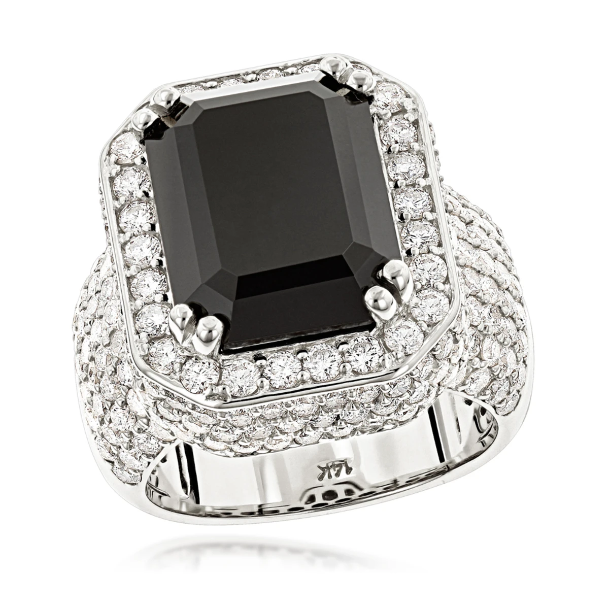 Custom Made 14K Yellow Gold Diamond Ring With Black Onyx For Men And Women 4.65ct