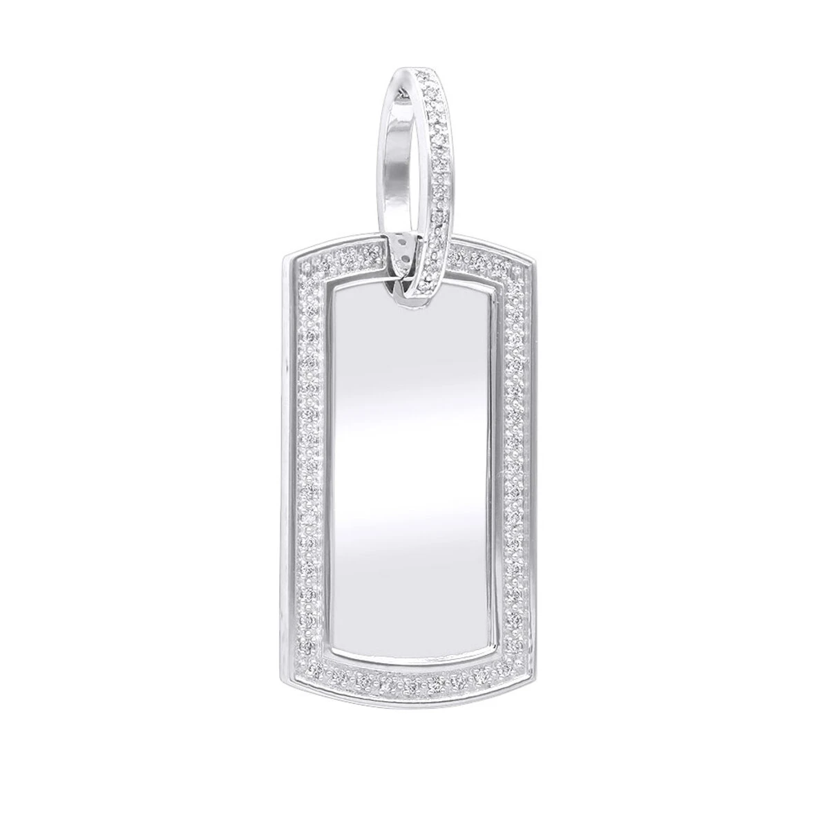 This fantastic 14K Gold Oversized Diamond Dog Tag Pendant for Men features a classic but larger than regular dog tag design, the pendant is 2 and a half inches long with bail and is decorated with 1 carat of sparkling round diamonds set it one row design around the pendant each prong set around the border and on the bail leaving the middle of this customizable dog tag open for a special design, engraving or a picture. All our dog tag pendants can be personalized with different color (canary yellow, blue, white or black) diamonds and engravings. Please contact us for details. This large men’s diamond dog tag pendant is available in white, yellow and rose gold. You also can personalize this piece or check we’ve already made and create your own design.
