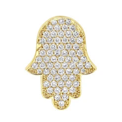 10K White Gold Diamond Hamsa Hand Pendant Fully Iced Out 1 Carat Charm