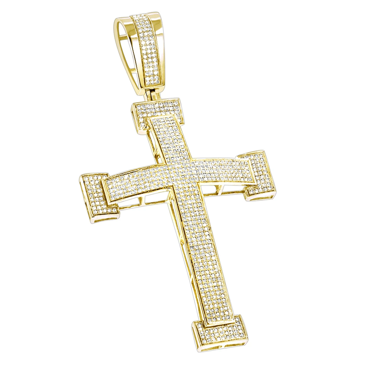 Discount Diamond Crosses! This 14K Gold Men’s Diamond Cross Pendant weighs approximately 12 grams and showcases 2 ctw of sparkling round diamonds, each masterfully set in a lustrous gold frame. Featuring a luxurious design and a highly polished gold finish, this men’s diamond cross pendant is available in 14K white, yellow and rose gold. You also can personalize this piece or check we’ve already made and create your own design.