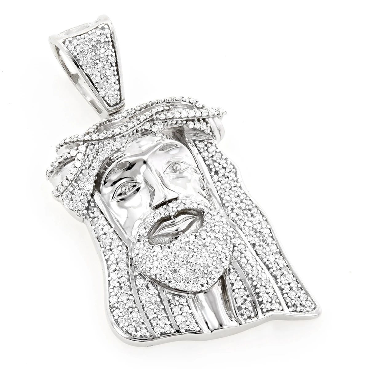 Diamond Jesus Head Pendant 0.75ct 10K White Gold Mini Jesus Face Charm