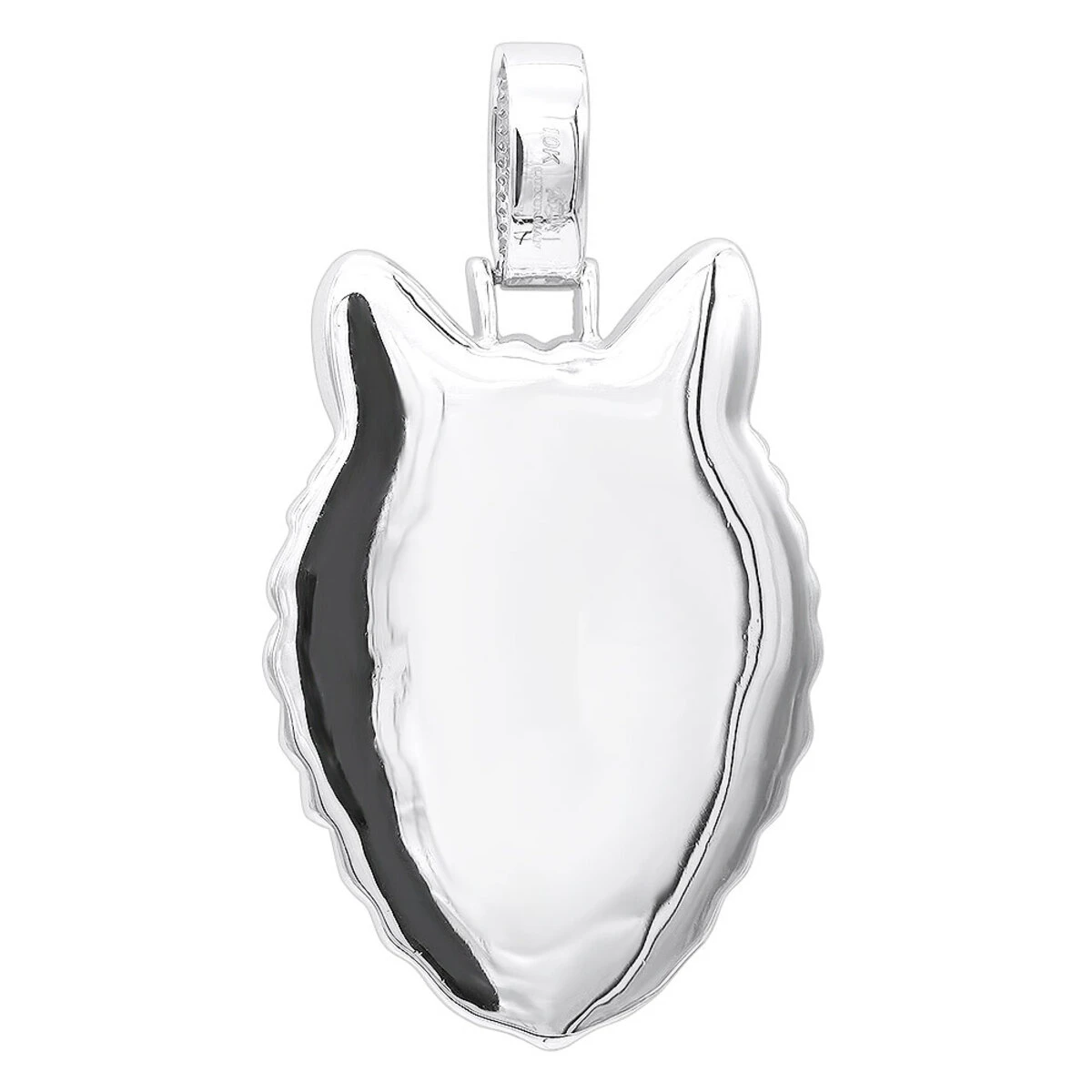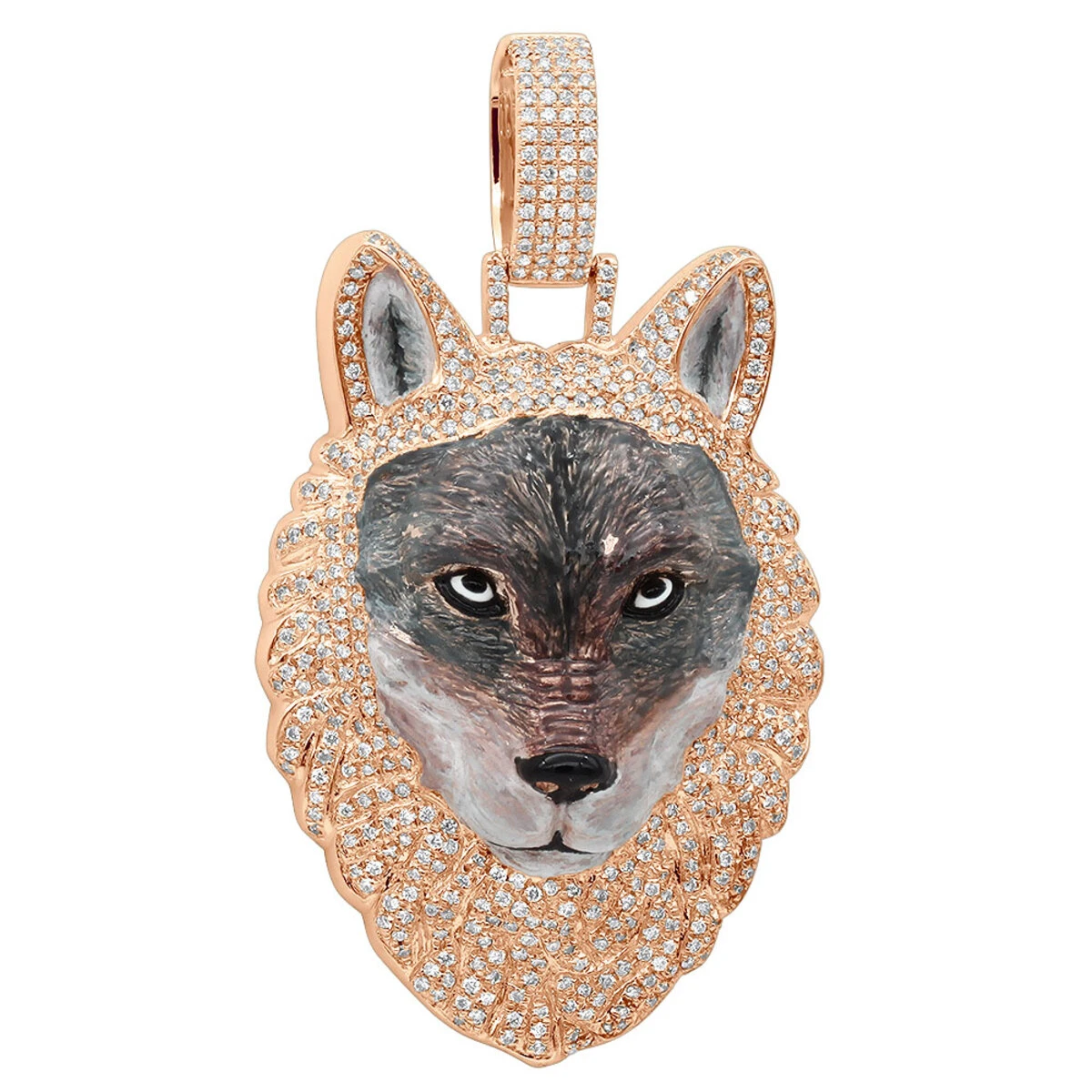 Diamond Wolf Pendant For Men 10K White Gold W Enamel 2ct Iced Out Design