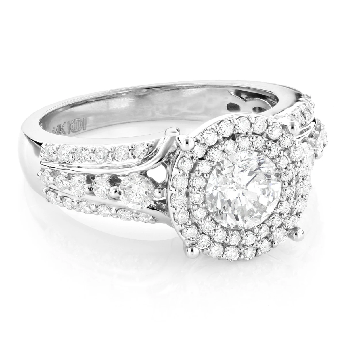 Double Halo Diamond Engagement Ring 1.75ct 14K White Gold