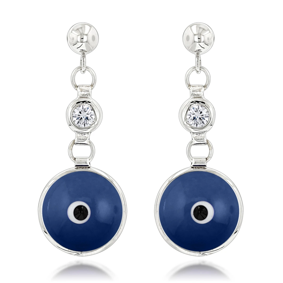 Good Luck Charms Diamond Evil Eye Earrings 0.20ct 3/8in (10mm) 14K White Gold
