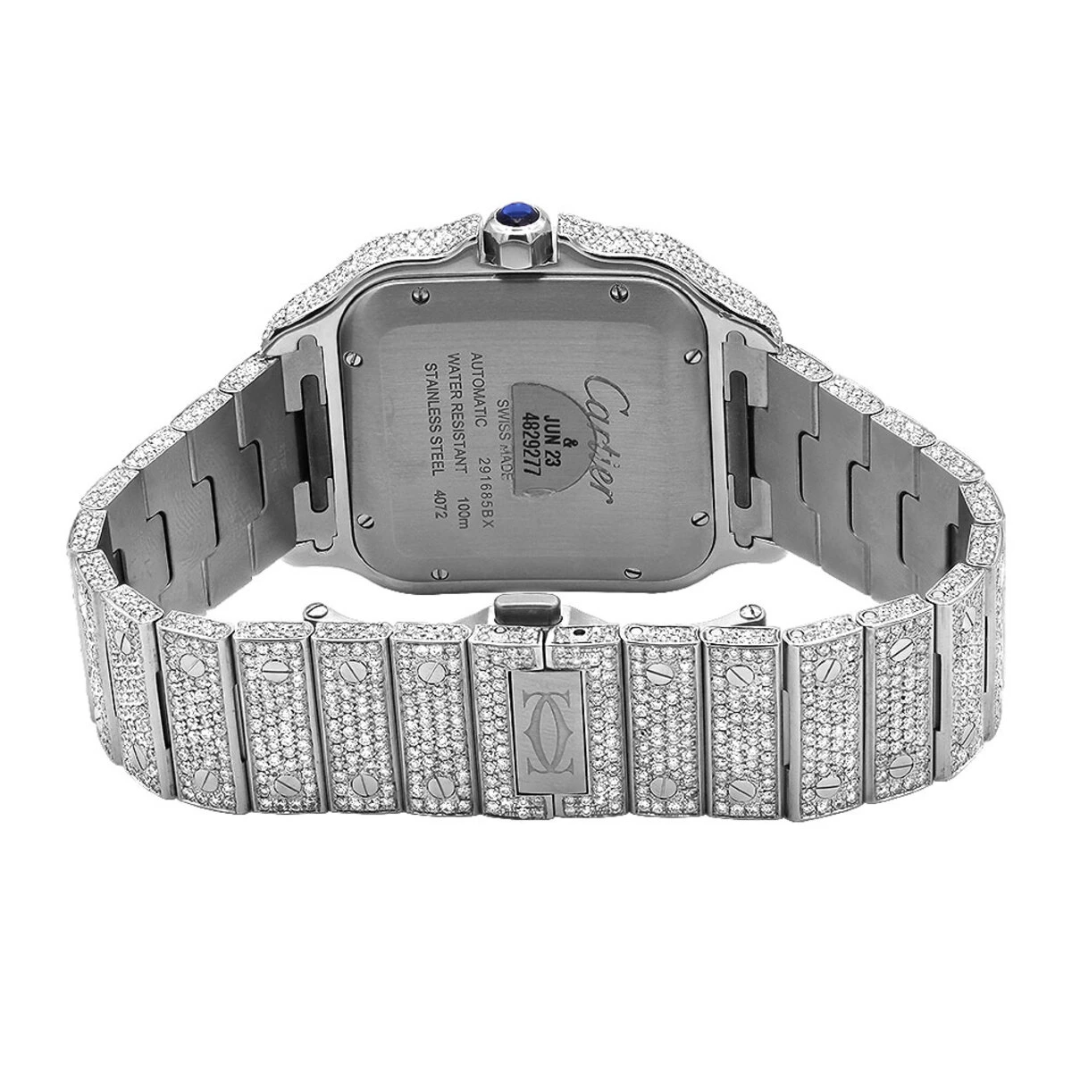 The Cartier Santos Iced-Out watch boasts a variety of features that make it a true standout. The stainless steel case not only provides durability but also adds a touch of elegance.