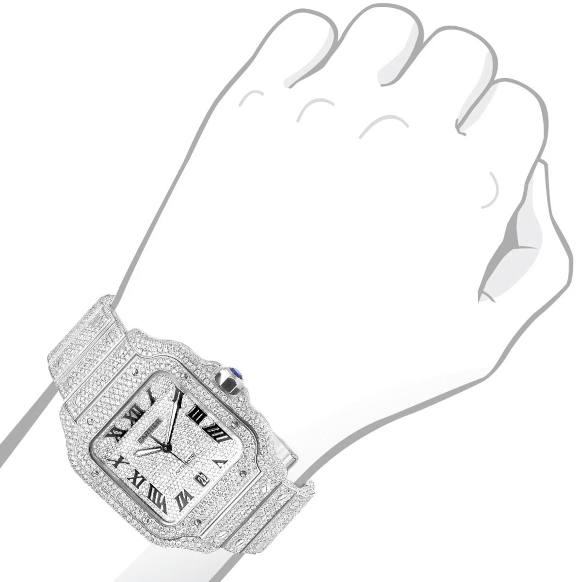 Iced Out Cartier Santos 40mm Diamond Watch 25 Ct