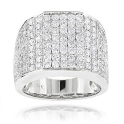 This Iced Out Men’s Diamond Ring in 14K gold weighs approximately 13 grams and showcases 3.54 carats of dazzling round diamonds. Featuring a wide design and a highly polished gold finish, this men’s diamond ring is available in 14K white, yellow and rose gold.