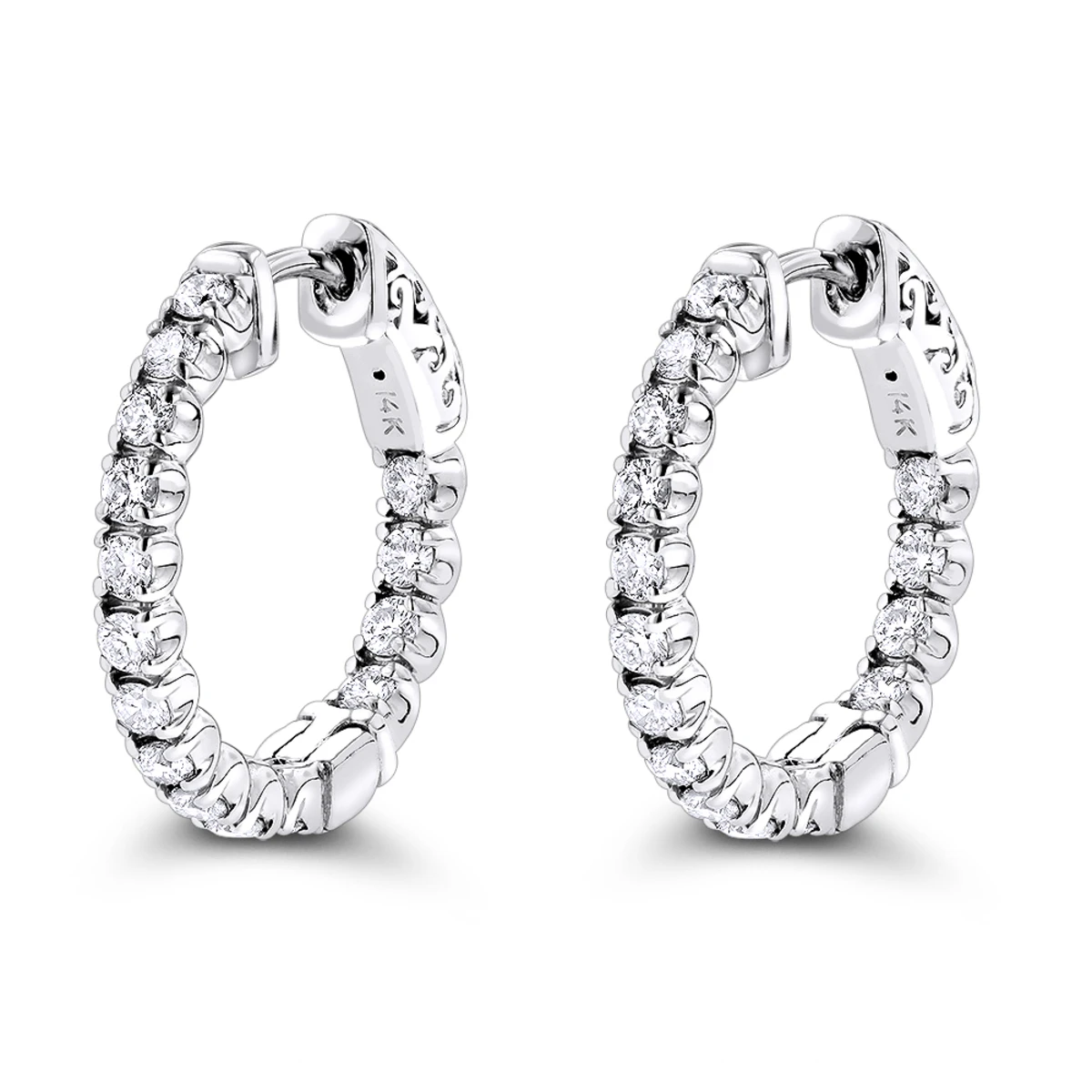 Inside Out Diamond Hoop Earrings Small 14K White Gold 1.5ct By Luxurman