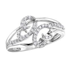 This adies Designer Diamond Ring in 10K Gold showcases 0.26 carats of round diamonds and is available in 10K white, yellow and rose gold; just choose your size.