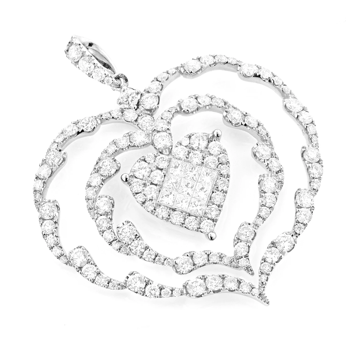 Ladies Unique Diamond Heart Pendant 3ct 14K White Gold